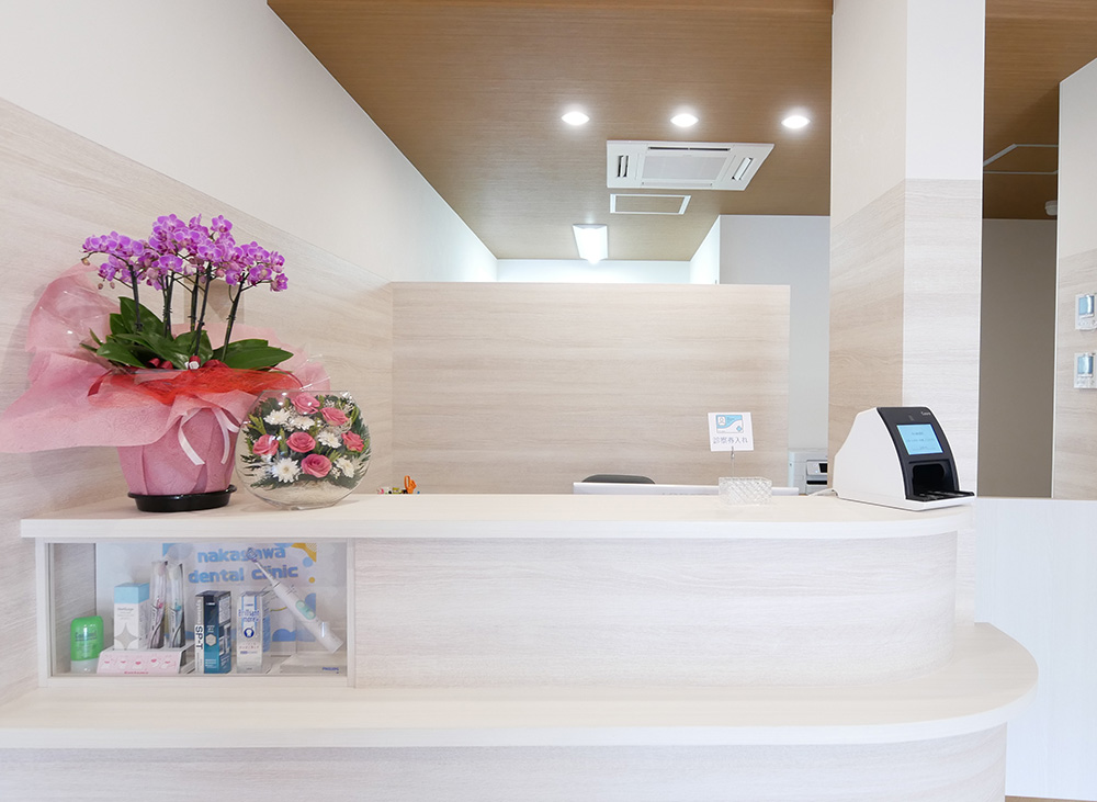 ご来院されましたら、まずはこちらにお声がけください。初診の方は問診表をご記入していただきます。