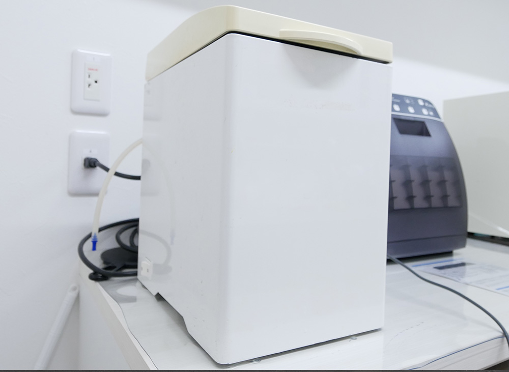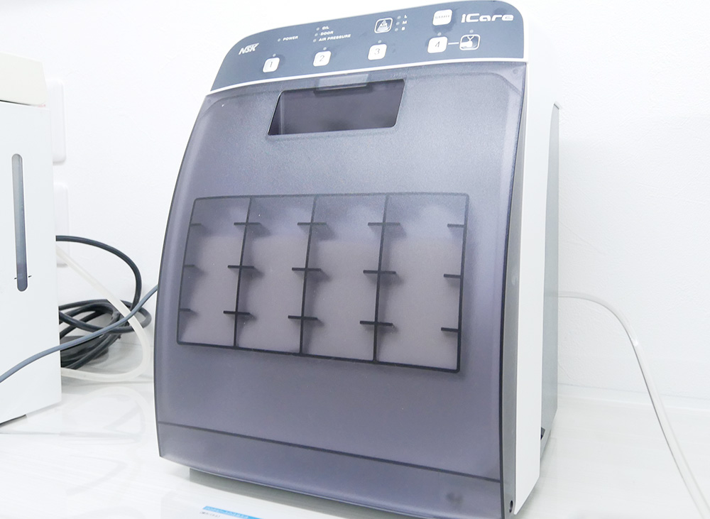 「タービン」や「ハンドピース」は、その構造が複雑かつ繊細であるため、通常の滅菌器では十分に滅菌できません。そこで当院では、専用の滅菌器を使用し、これらの器具も治療器具と同様に、患者さんごとにしっかりと滅菌処理を行ったものに交換しております。