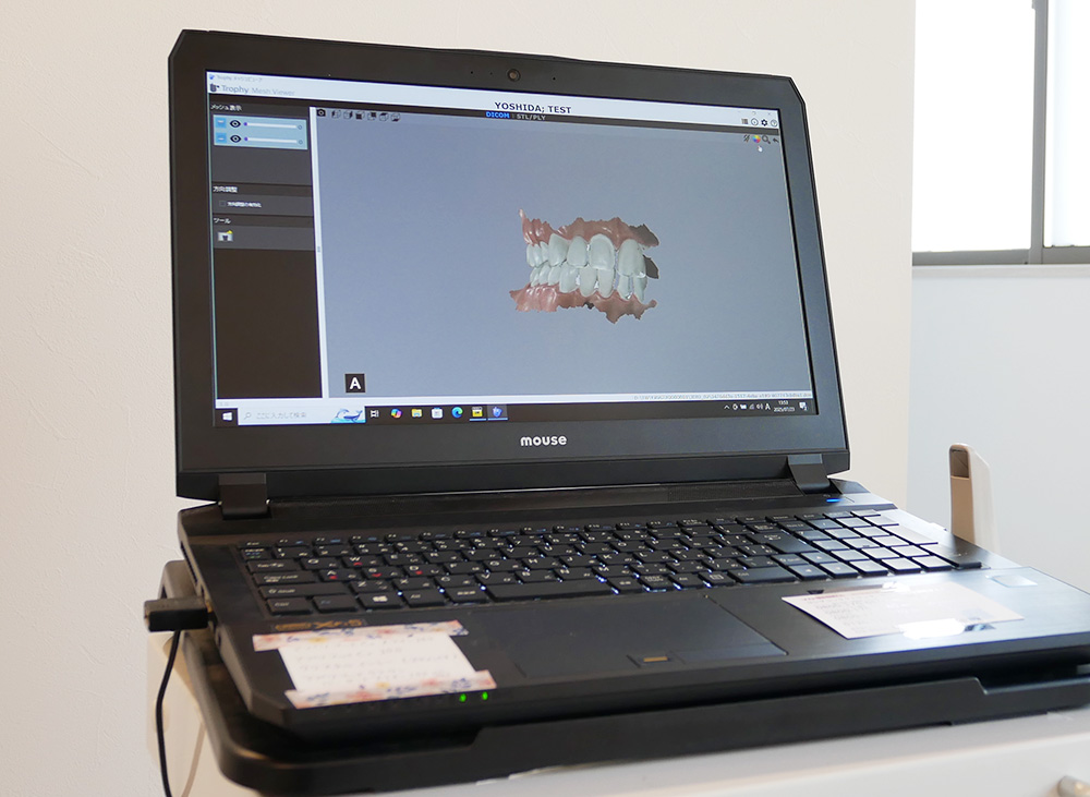 機械の先端を当てていき、最短30秒で正確な型取りを行えます。