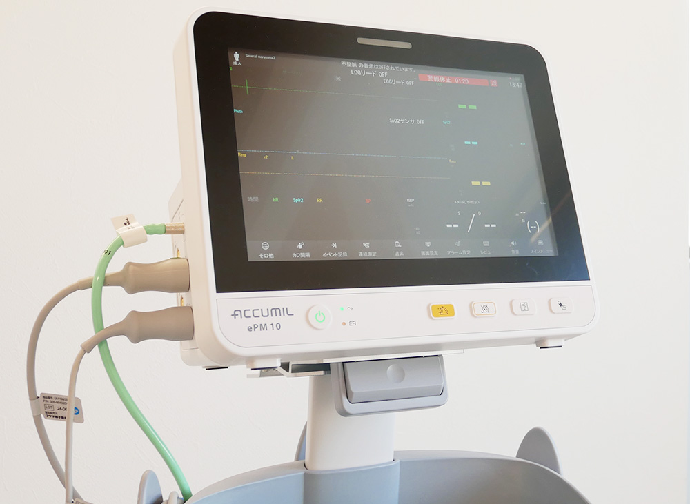 インプラントや抜歯など、処置に出血を伴う場合はこちらを用いて患者さんの全身状態を常に把握します。